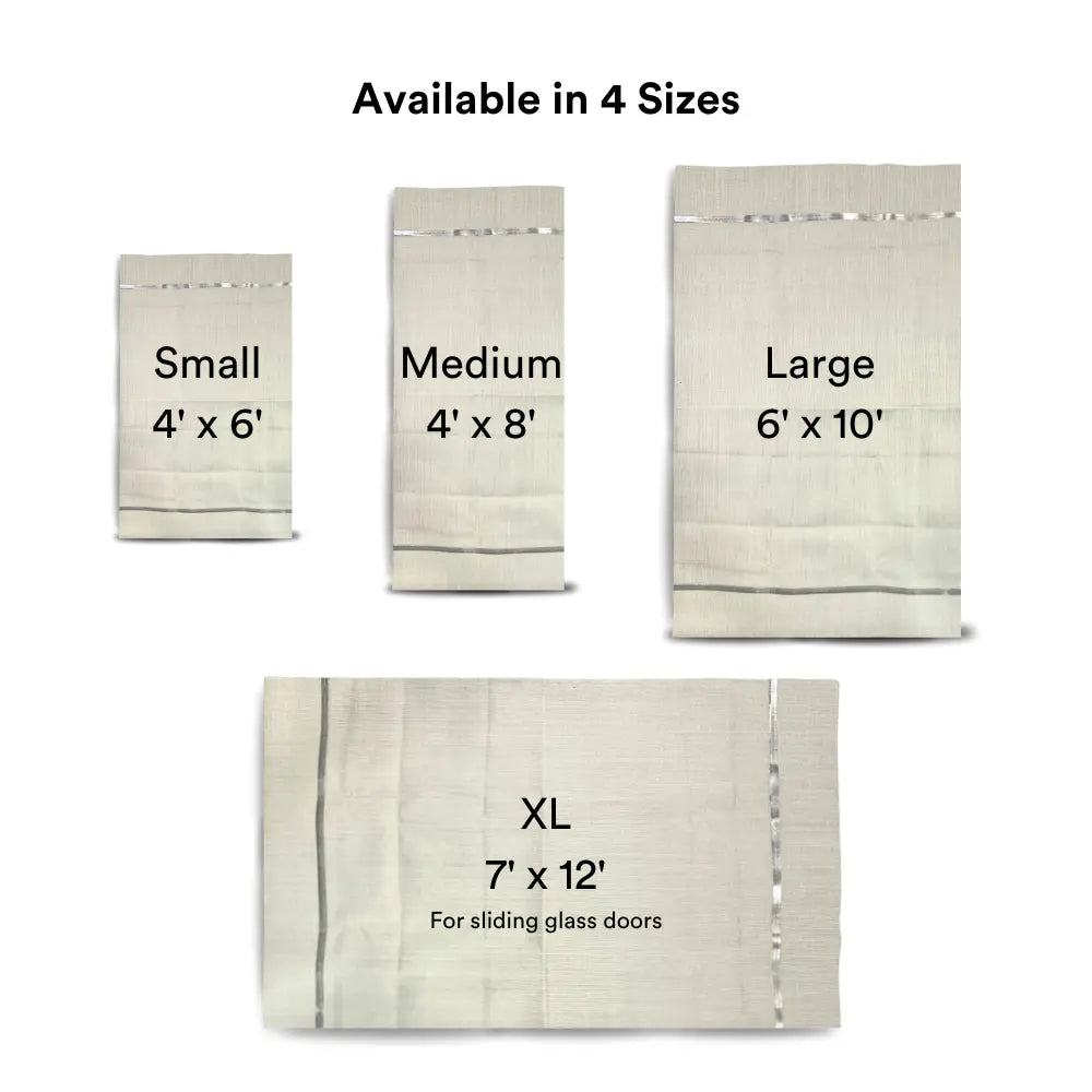 - Large: 6’ x 10’ – for wide windows or small patio doors